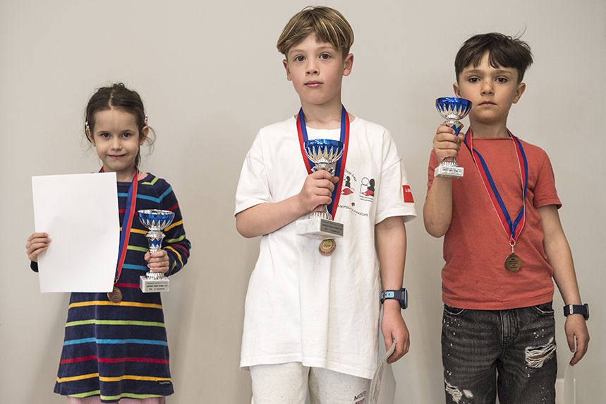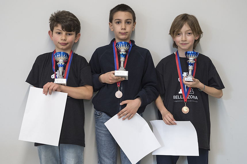 U8: Virginia Ghisla (Tre Valli) – Logan Zanazzi (Swiss Chess Academy) – Aris Bonfanti (Tre Valli)